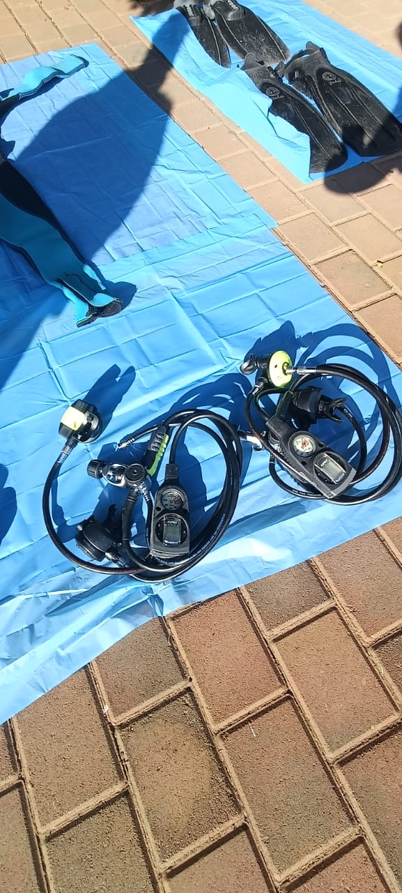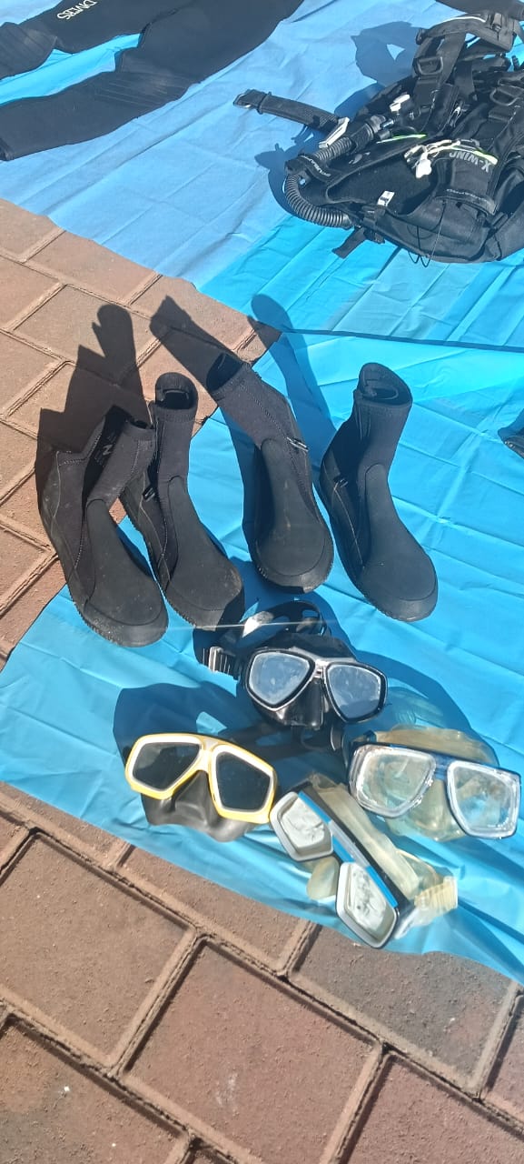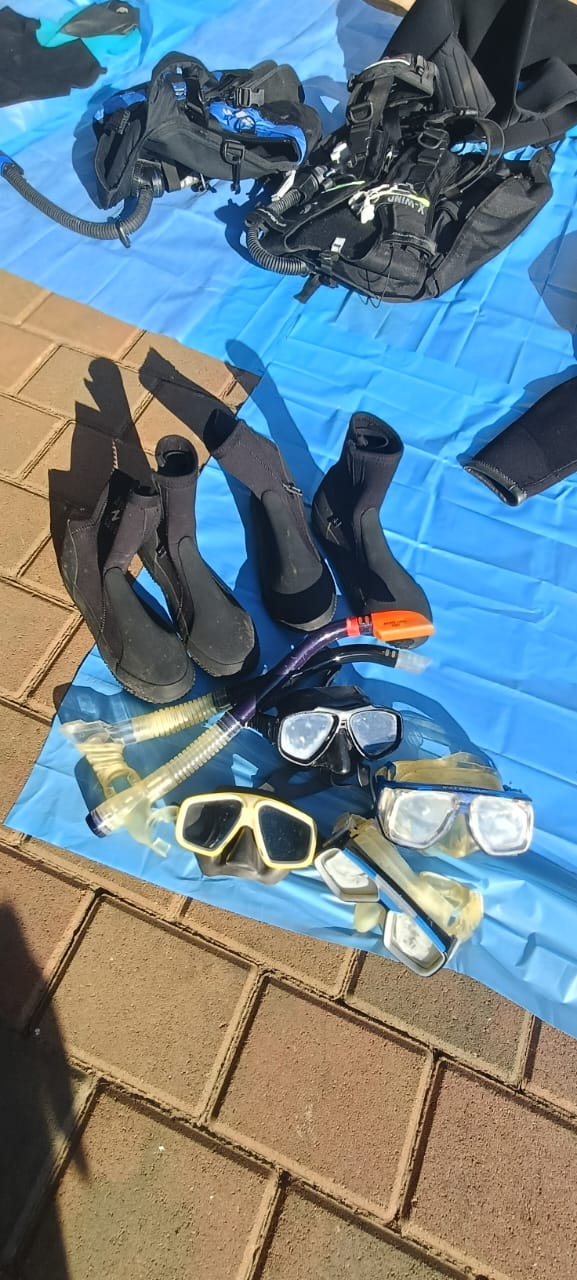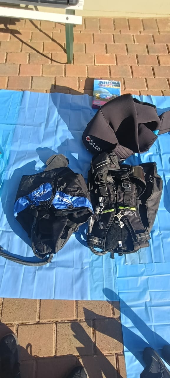 Complete set of diving equipment including 2 BCD vests, 2 regulators, 2 submersible pressure & depth gauges, 2 pairs of fins, 2 pairs of booties, 3 masks, 2 chicken vests, 2 Suunto Favor diving computers, 2 weight belts, and 2 wetsuits. Purchased in 2001 by my wife and me, the gear has been hardly used and is in good condition. Ideal for beginners or hobbyists. Please contact for more details. Louisa 0825786816view more