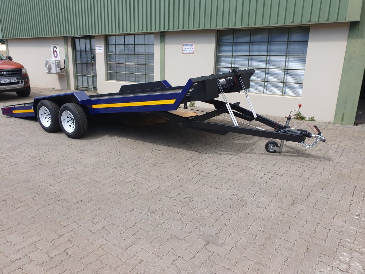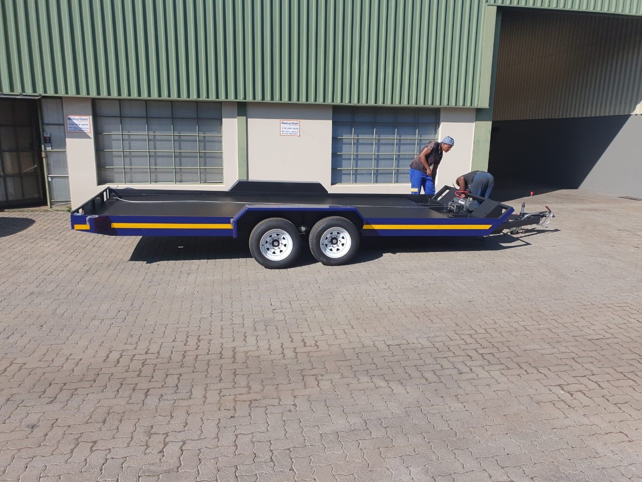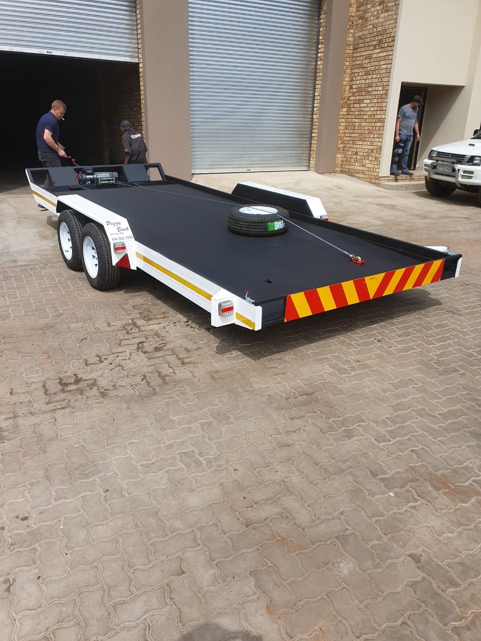 By the manufacturers of the Trademark Original Piggy Back Tow Dolly. The Double Axle Tilt Car Trailer is a full car trailer with 15" wheels including a spare wheel, comes standard with a powerful electric winch, self tilt trailer bed etc. These trailers are manufactured for high speed towing with braked axle and solid steel frames, built to last. You will never need another trailer.