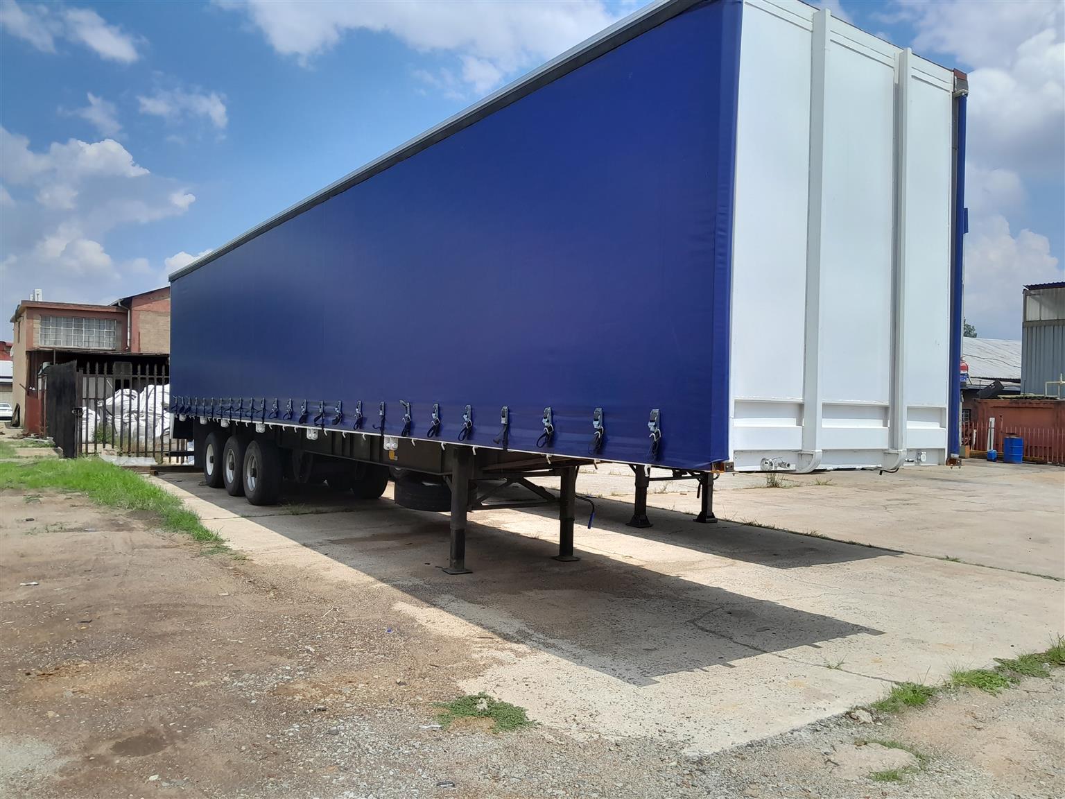 3-axle tautliner trailer for sale. Comes with brand new roof and curtains. 1996 model in very good condition. See it also on https://machinemarketsa.co.za/wp/category/trailers/