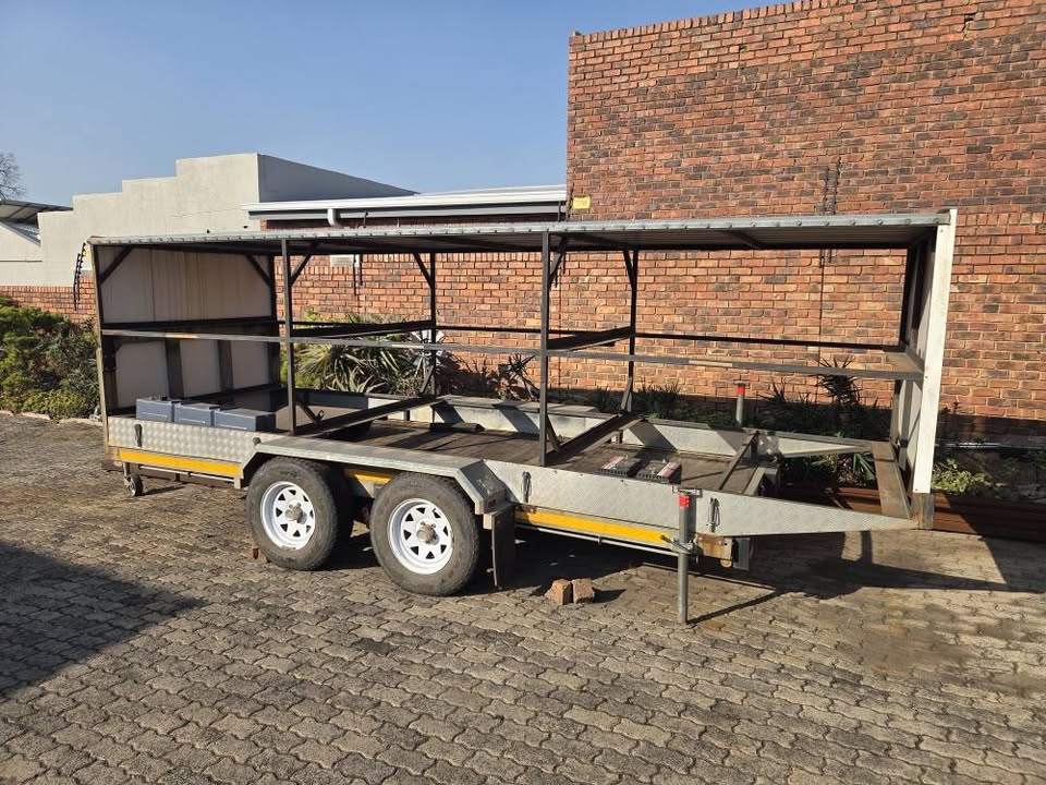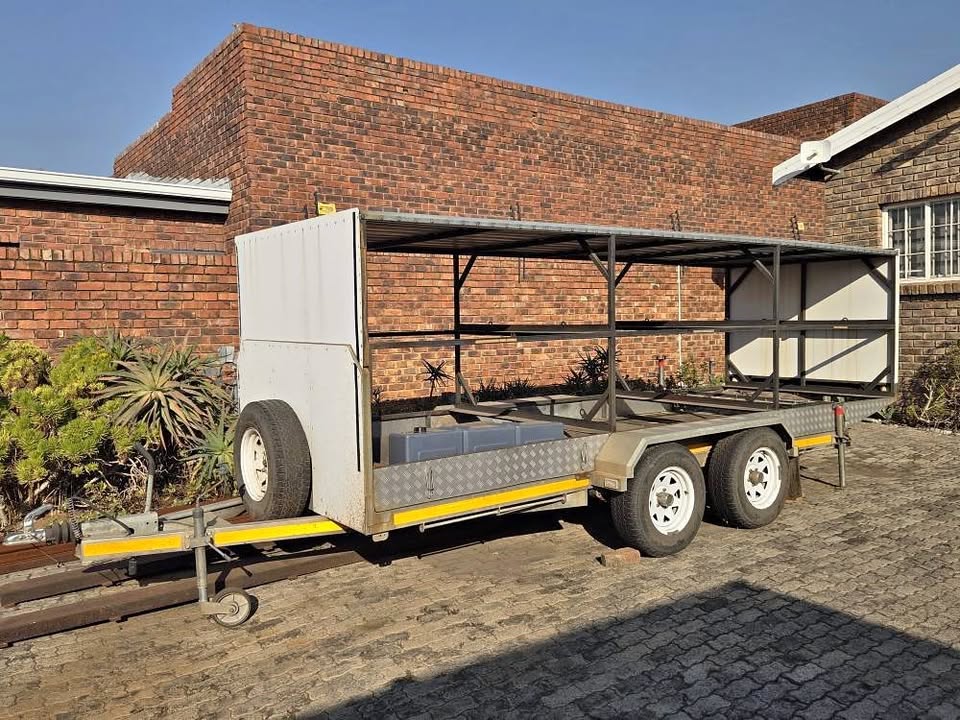 3Ton double axle run in brake trailer for sale. Bed is 4,7m x 1,7m, low rider. 15" rims and tyres incl. Spare wheel. Papers up to date..