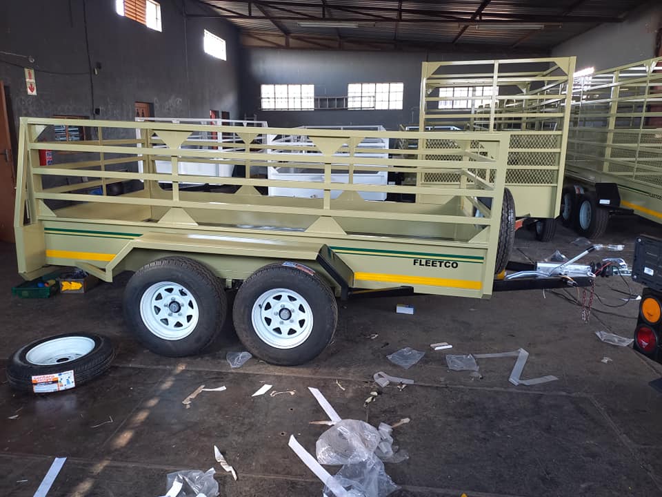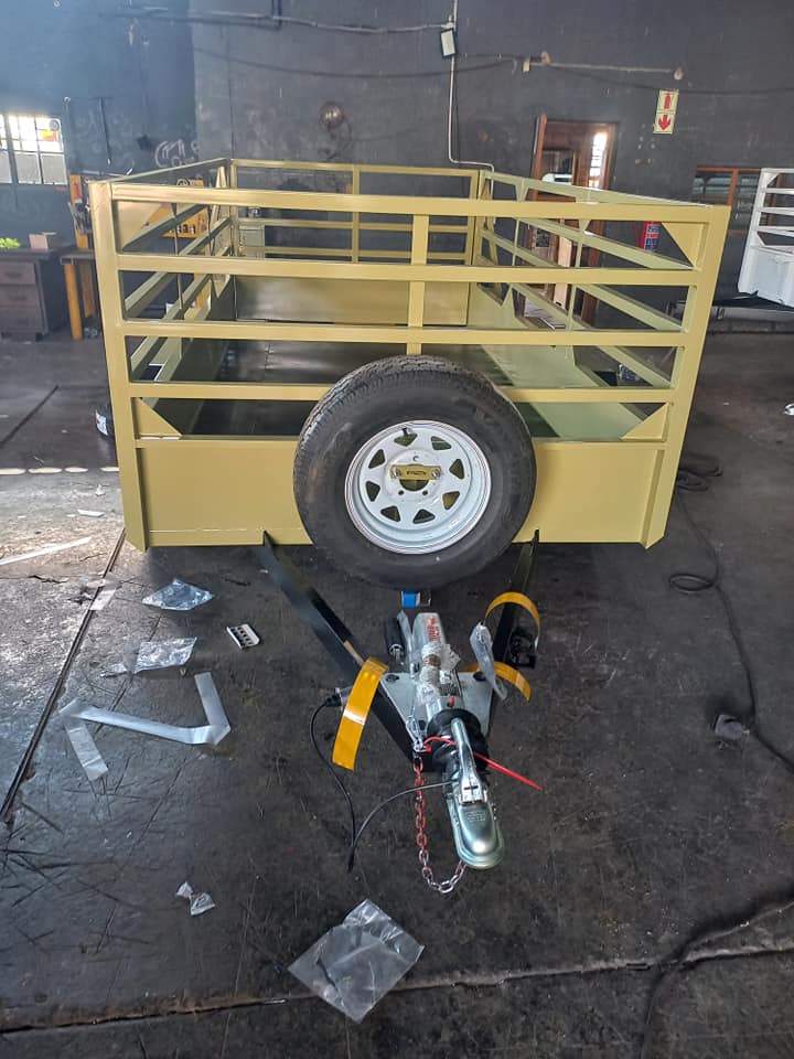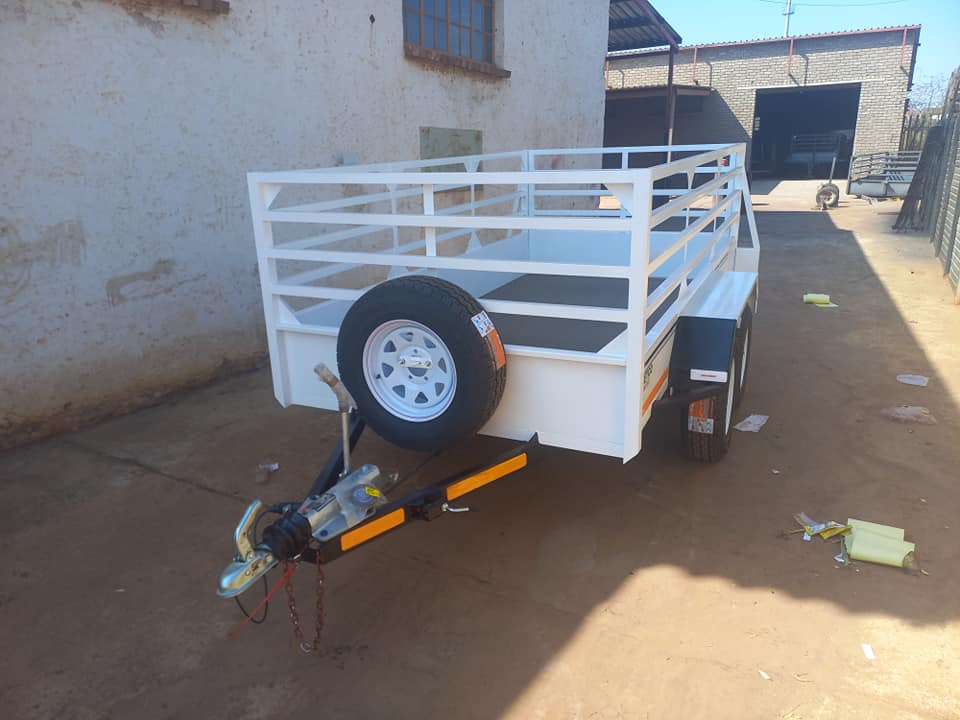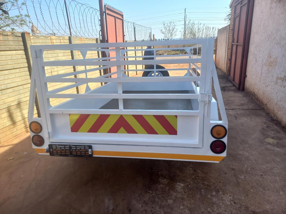 Contact Jeunice Grobler to place an order 068*332*3203 or 072*390*7107 3m x 1.5m x 1m double axle utility trailers built brand new with single brake, 14" wheels plus spare wheel and Jockey wheel. The price includes vat, ID dot and papers We are SABS registered, all our trailers are already through the test. Color option of White or Khaki. Optional: LED 3 in 1 lights Universal lock (prevent trailer theft) Steel licence disc holder Factory located in Westonaria Whatsapp is welcome for a pin location for viewing