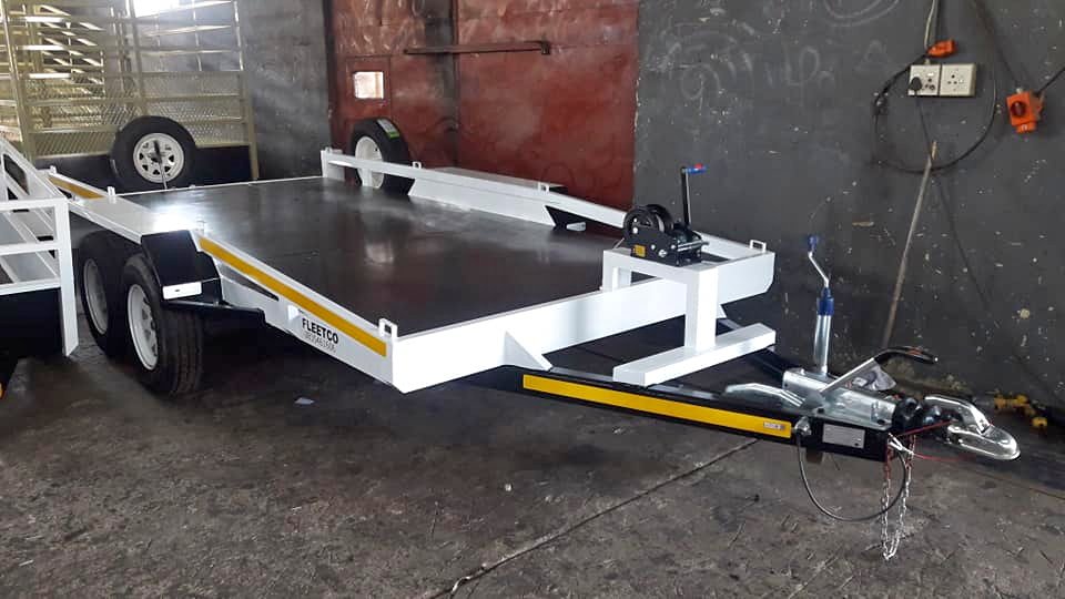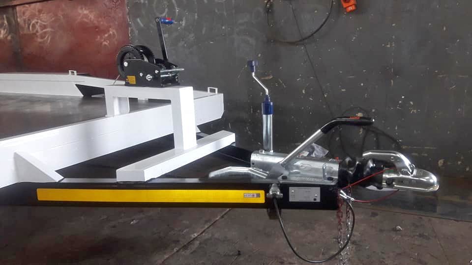 4m x 1.9m double axel braked 1.5 ton Tilt Car trailer with 14" tyres. Papers, ID Dot, Vat, Spare wheel, Jockey wheel, Universal coupler lock, LED lights, steel licence disk holder.