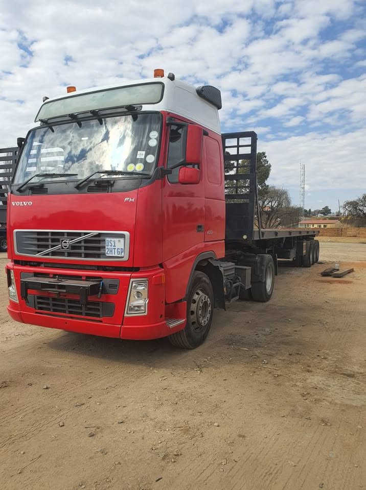 Combo , 2008 Volvo FH 400 , (4×2). with Tri Axle Flatdeck Trailer. Excellent condition Ready to operate All paperwork in order No vat : R560 000 straight Any inquiries: Johann WhatsApp or Mobile +27(0) 71 141 3695