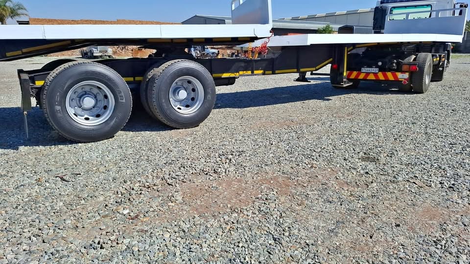 𝟐𝟎𝟏𝟎 𝐇𝐞𝐧𝐫𝐞𝐝 𝐅𝐥𝐚𝐭𝐝𝐞𝐜𝐤 𝐋𝐢𝐧𝐤 𝐓𝐫𝐚𝐢𝐥𝐞𝐫 Combination (6m & 12m) Condition: Immaculate Key Features & Refurbishment: * Deck: Completely new decking installed on both trailers. * Finish: Full professional respray. * Tyres: * Front (6m) Trailer: 8 brand new recap tyres. * Rear Trailer: 8 good secondhand tyres. * Mechanical Refurbishment: Comprehensive overhaul, including: * All rocker and torque arm bushes replaced. * Hub bearings cleaned and repacked. * Brake shoes are at 80% (no immediate replacement necessary). * New S-cam bushes. * Slack adjusters replaced as needed. Pricing: * Local (South Africa): 𝐑𝟐9𝟓,𝟎𝟎𝟎 (excluding VAT) * Export: 𝐑𝟐9𝟓,𝟎𝟎𝟎 𝓑𝓾𝔂 𝔀𝓲𝓽𝓱 𝓬𝓸𝓷𝓯𝓲𝓭𝓮𝓷𝓬𝓮 𝓯𝓻𝓸𝓶 𝓪 𝓽𝓻𝓾𝓼𝓽𝓮𝓭 𝔂𝓪𝓻𝓭 𝓽𝓱𝓪𝓽 𝓴𝓷𝓸𝔀𝓼 𝓬𝓸𝓶𝓶𝓮𝓻𝓬𝓲𝓪𝓵 𝓿𝓮𝓱𝓲𝓬𝓵𝓮𝓼.