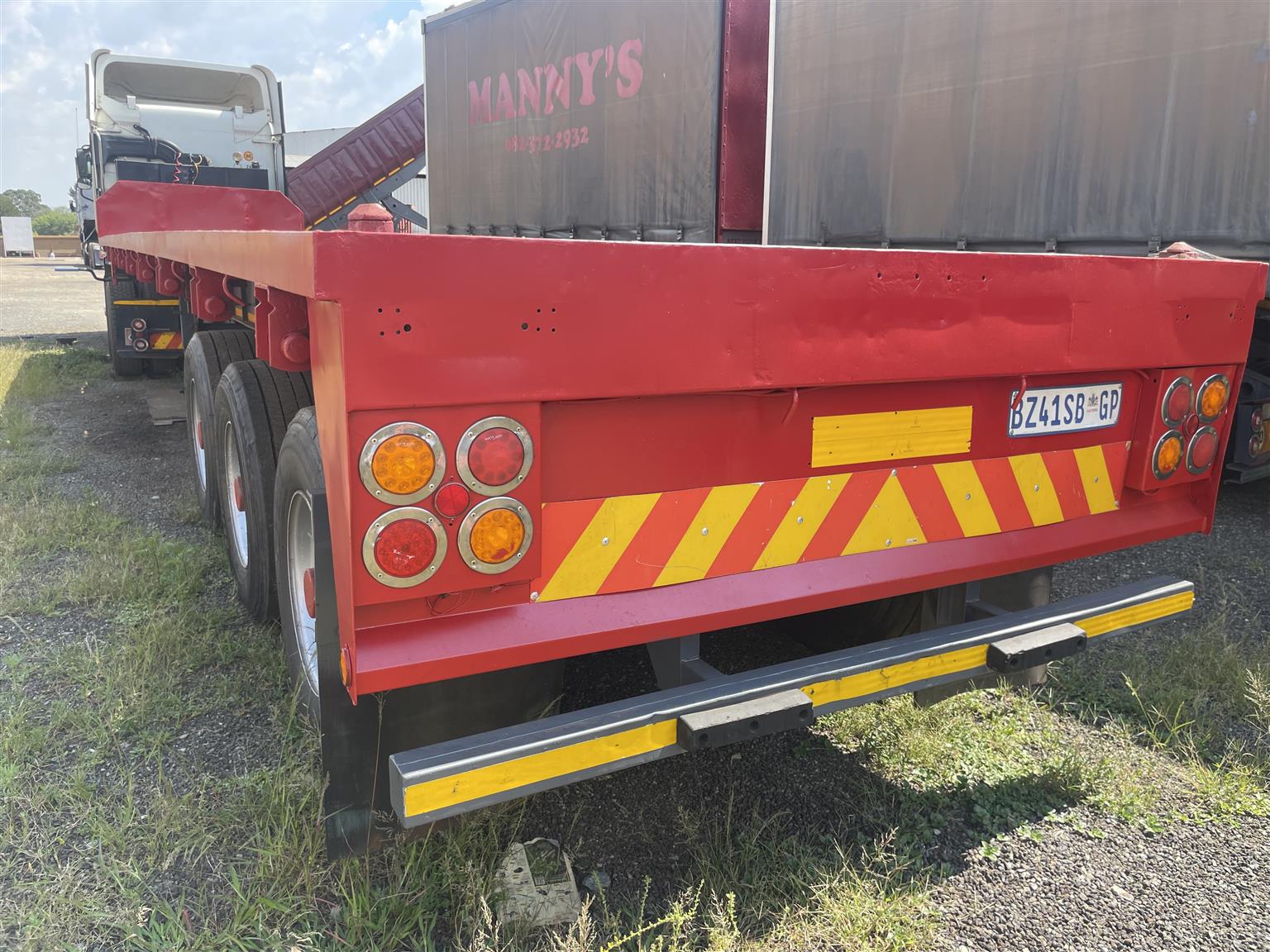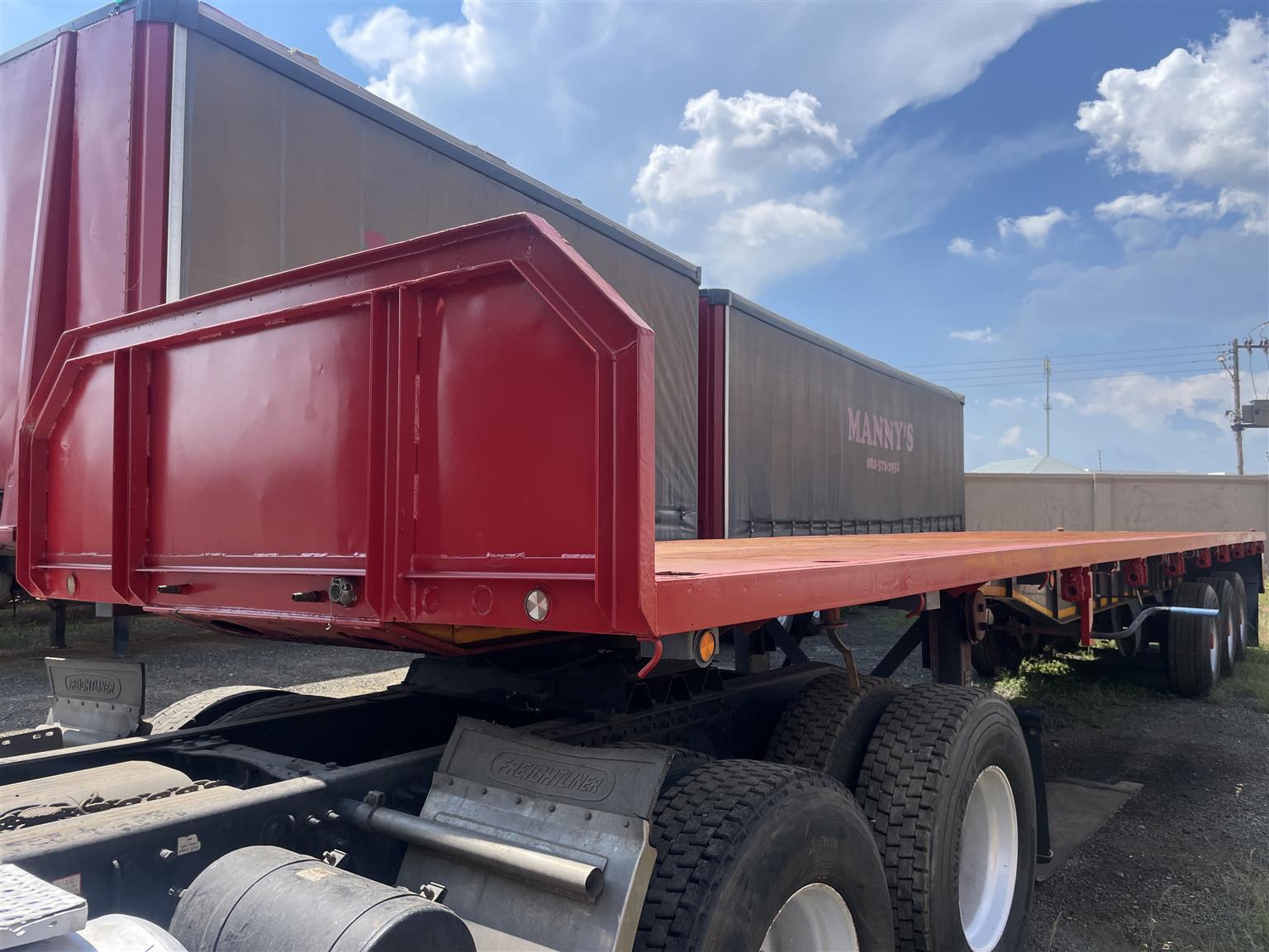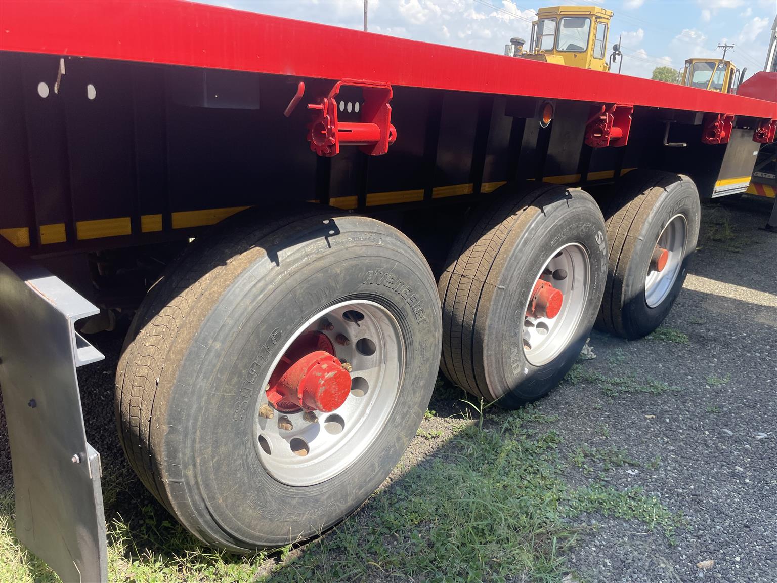 13 mtr 3 axle flat deck trailer, 6 x new recap tyres 385/65R22.5, twist locks including centre mount and pole pockets