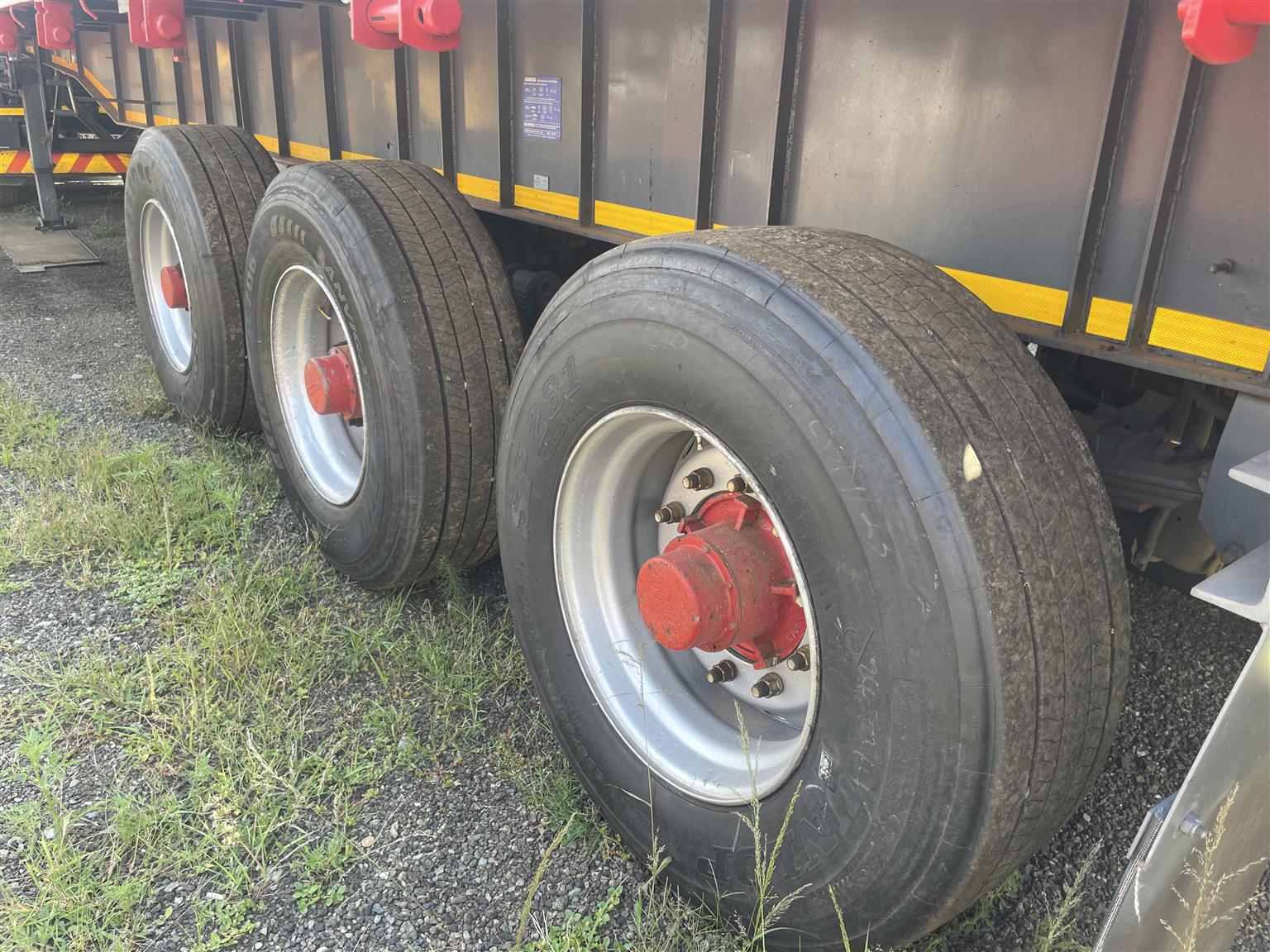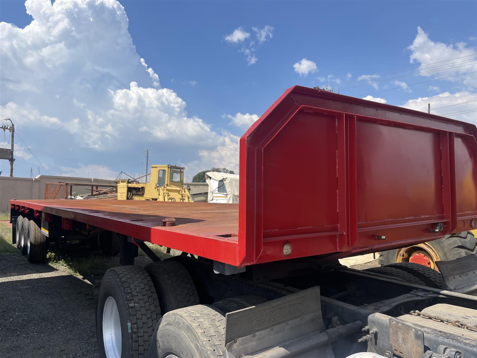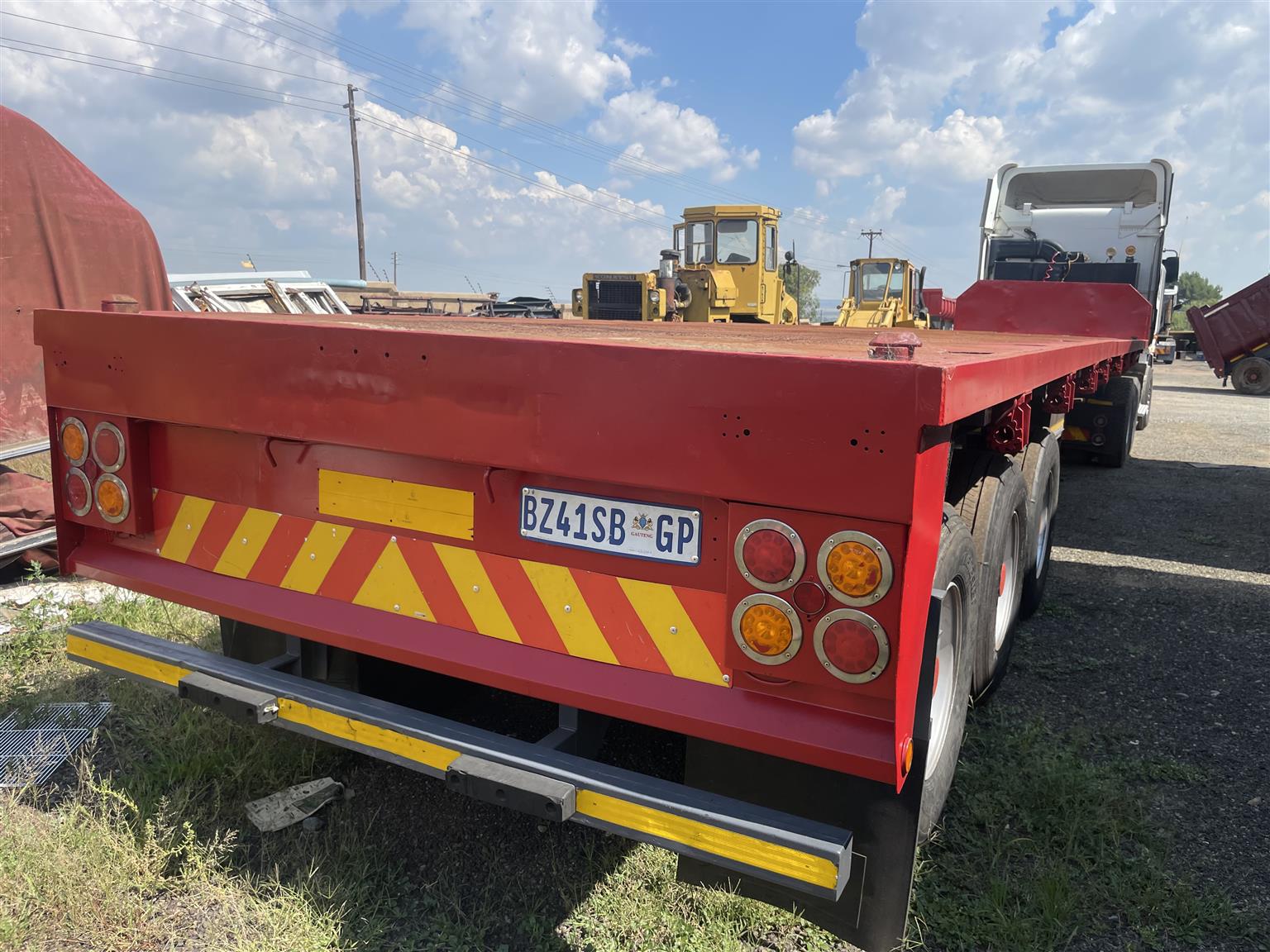 13 mtr 3 axle flat deck trailer, 6 x new recap tyres 385/65R22.5, twist locks including centre mount and pole pockets
