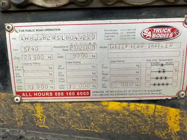 Used 2020 SA Truck Bodies 40m3 Side Tipper