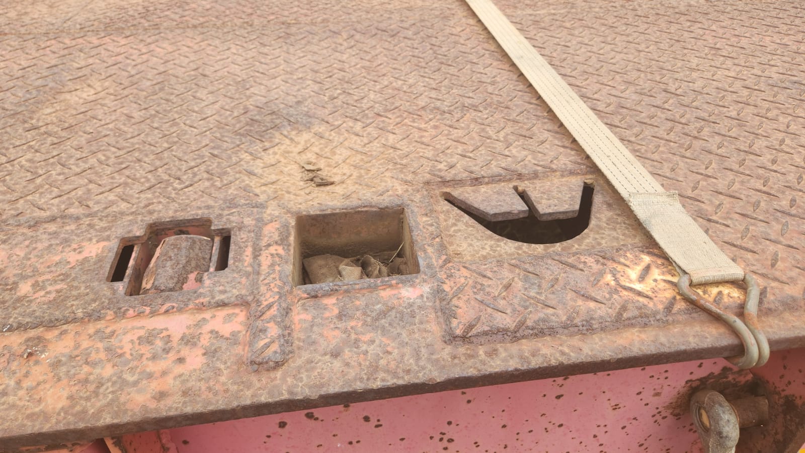 Tie down belts on the left and right of lowbed like on semi-trailer