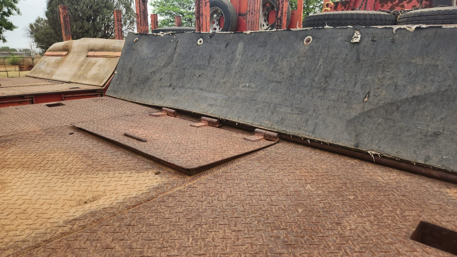 2 tool boxes, 1 in front of gooseneck, 1 on flat deck