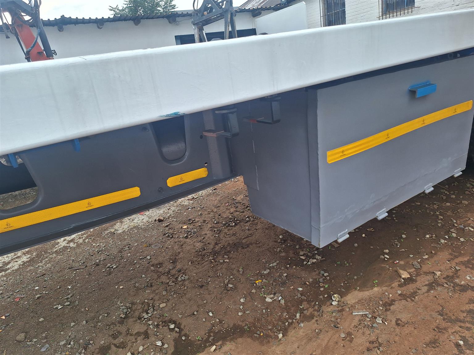 Dolfyn Superlink Trailer with Henred Spring Suspension. Full set of container locks, double sparewheel holder, Big Toolbox, block holder, new lights, brakes 90%, Deck in great condition. Light chassis. Ready to work. No Vat. Im thr owner not a broker.