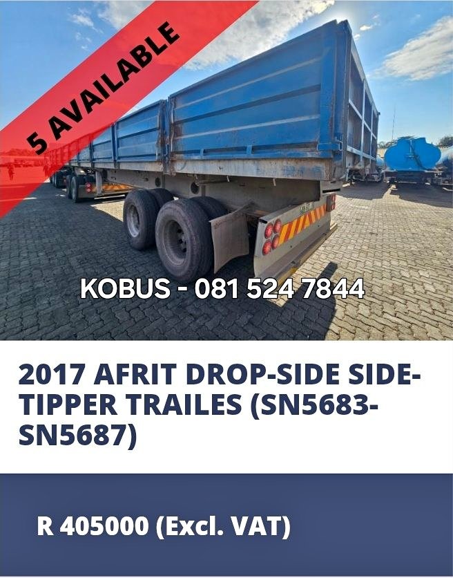 5 AVAILABLE 2017 AFRIT DROPSIDE TIPPER 800mm SIDES KOBUS -