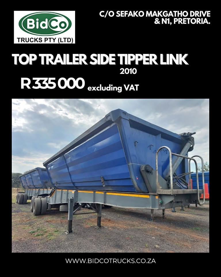 Visit us at our yard for more trucks, trailers and plant equipment. We thrive to help you in expanding your fleet. If we don't have it we make it our mission to find it for you. *Prices are excluding vat and admin fees* Available to view at: Bidco Trucks C/o Sefako Makgatho drive and the N1 highway. Plot 28, Wolmeranspoort, Pretoria, 0035 TEL: / 4 / 5 WHATSAPP: LEVISON: OR JULIUS: .