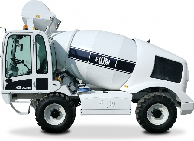 The DB X35, shippable in containers, is the most compact and cost effective front loading Concrete Mixer in its class.