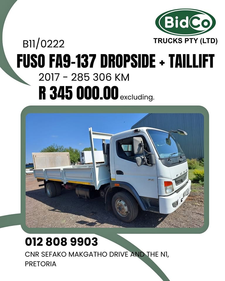Visit us at our yard for more trucks, trailers and plant equipment. We thrive to help you in expanding your fleet. If we don't have it we make it our mission to find it for you. *Prices are excluding vat and admin fees* Available to view at: Bidco Trucks C/o Sefako Makgatho drive and the N1 highway. Plot 28, Wolmeranspoort, Pretoria, 0035 TEL: / 4 / 5 WHATSAPP: LEVISON: OR JULIUS: . #trucksales #trucks #Trucks #truckshow #trucksofinstagram #trucksdaily #truckparts #trucking #trailers #trailersales #trailersforsale #plantequipment #plantequipments #plantequipmentt #plantequipmentsales #plantequipmentforsale #Sales #salesalesale #commercialvehicles #commercial Selling Your Truck, Trailer and Plant Equipment Just Got Easier! At BIDCO Trucks, we specialize in quick and easy transactions, providing fair market value for your trucks. Whether its for purchase or trade-in of your used truck, Bidco Trucks is WHERE OUR QUALITY BECOMES YOUR RELIABILITY. Provide us your trucks details and we'll get in touch with you.