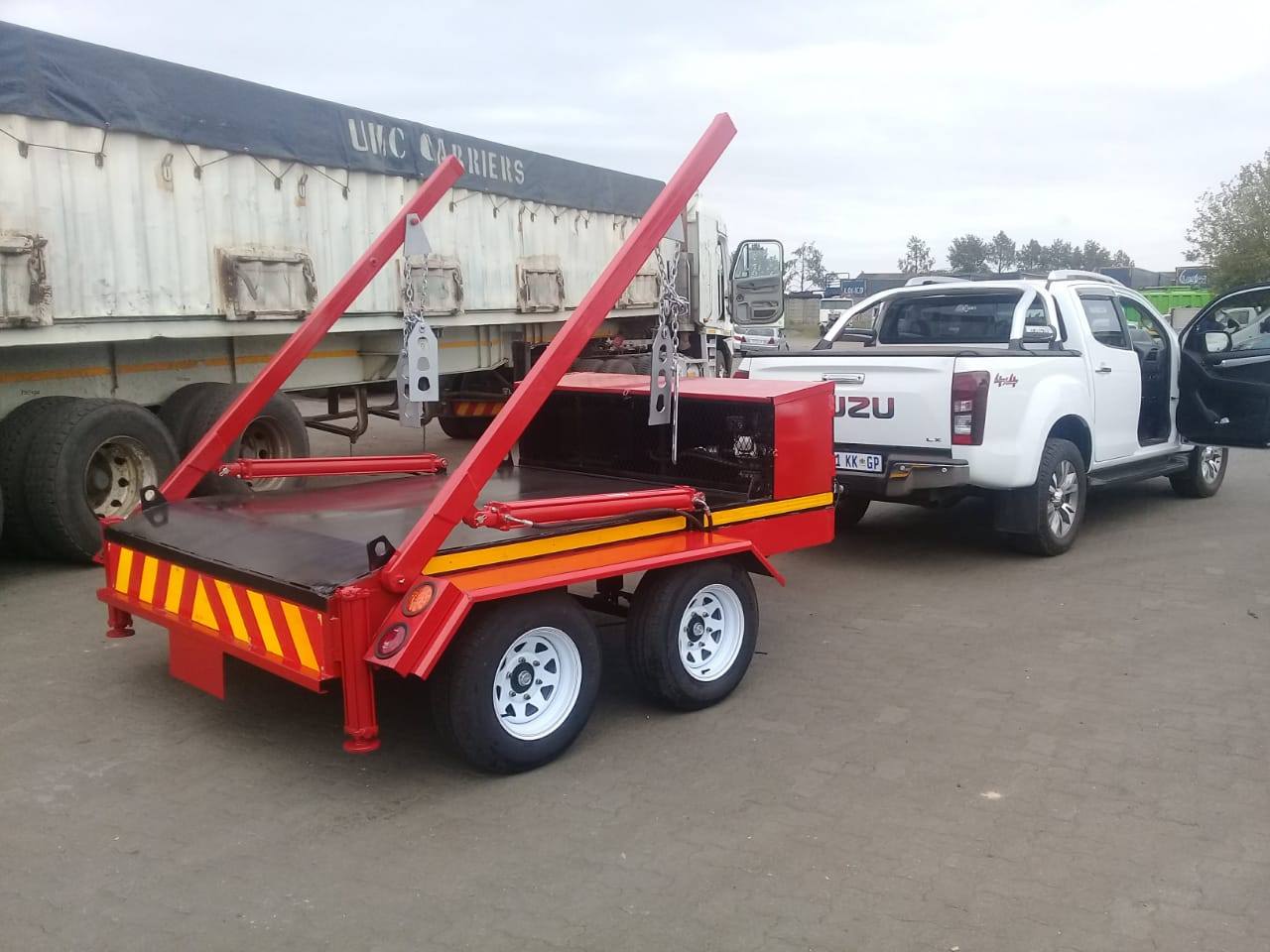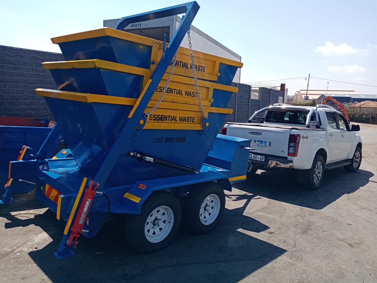 Skip Trailer with 10 Bins Special Running for 2 Weeks, Trailer comes with hydraulics, Brakes and Papers.