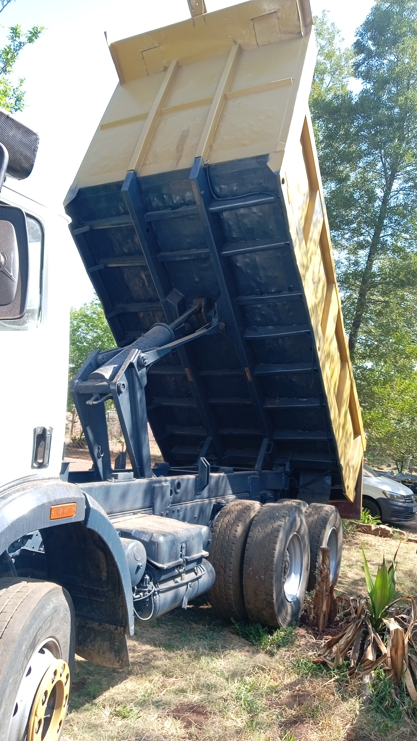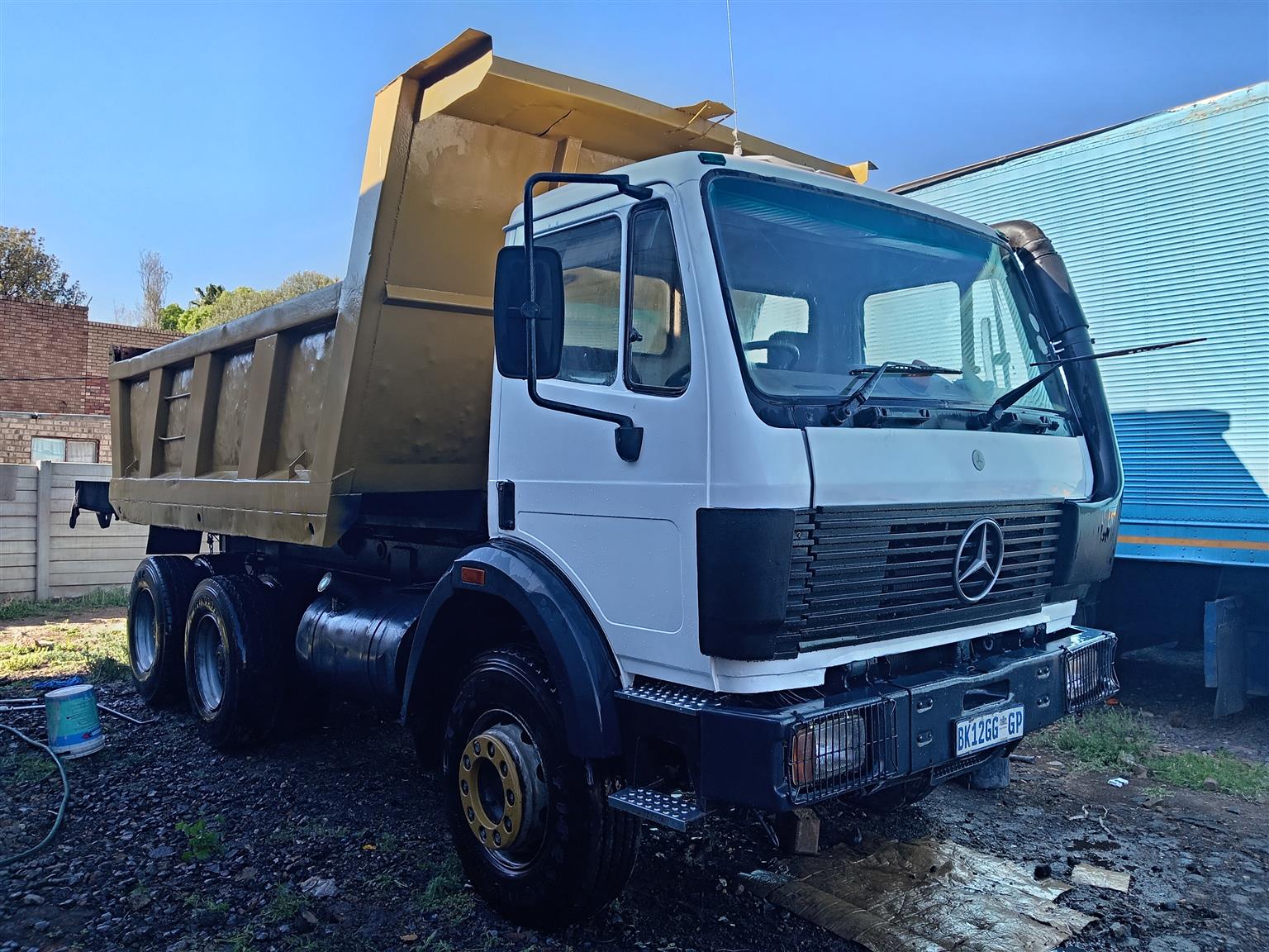 Mercedes Benz powerliner tipper truck, 10 cube, vehicle had a complete respray. Cosmetic. .. in excellent running condition. Tyres still good . Tipper works 💯 . Ready to work . Based in centurion for viewing. Price negotiable upon viewing. Papers in order