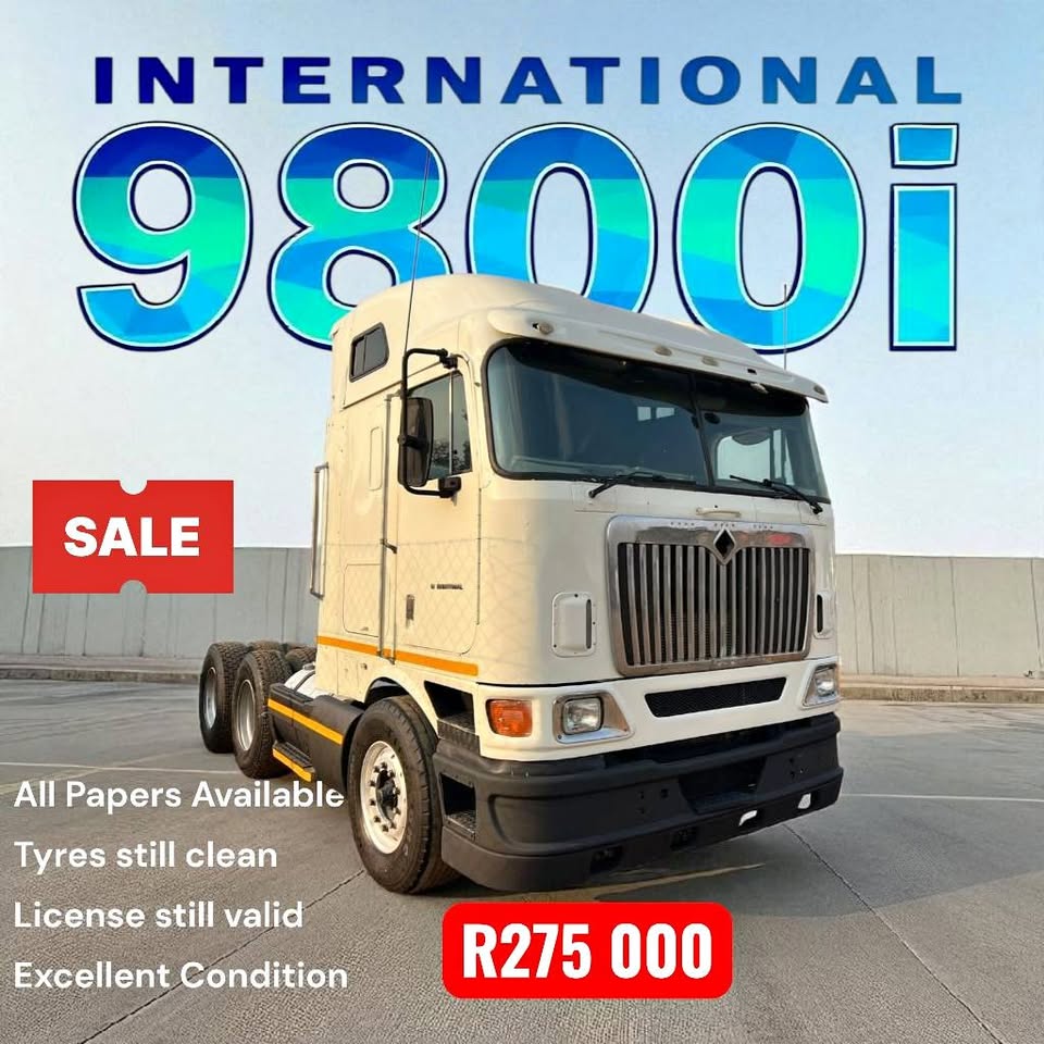 2011 International 9800i Mid Roof 6x4 – Price Drop! Ready to Work Don’t miss this clearance deal! This 2011 International 9800i Mid Roof 6x4 Truck is in excellent condition and priced to sell fast. Perfect for long-distance hauling, containers, side tippers, or general heavy-duty transport. Price: R275,000 – was R295,000 (Cash Deal) Condition: Clean, reliable, and ready for immediate work Configuration: 6x4 – built for heavy loads and tough jobs Location: South Africa Papers: All paperwork in order for a smooth transfer This truck is strong, durable, and dependable, making it an ideal choice for transport companies or owner-operators. At this price, it won’t stay available for long! 📍 Viewing available – first come, first served 📞 Call or WhatsApp: