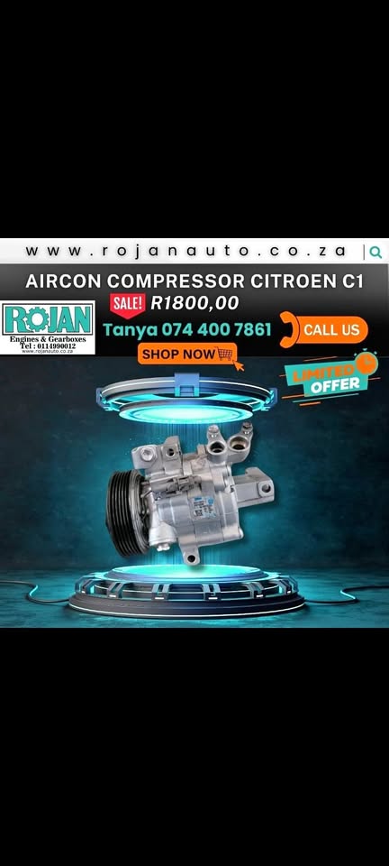 🚗KEEP YOUR COOL THIS SUMMER WITH ROJAN AC CALL TODAY TO PURCHASE OUR HIGH-QUALITY COMPRESSORS Tell: [hidden information] Whatsapp: [hidden information] Email: [hidden information] Or you can shop online at: www.rojanauto.co.za Don't be slow, Our prices are low!